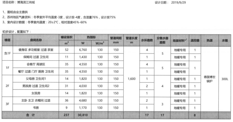 地暖系統(tǒng)技術(shù)配置表
