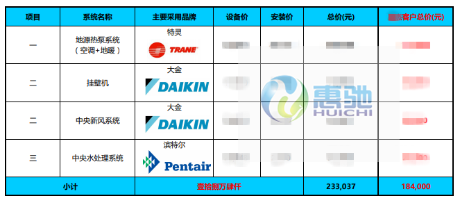 家居集成系統(tǒng): 特靈地源熱泵 大金掛壁機(jī) 大金全熱交換器/新風(fēng)系統(tǒng) 濱特爾中央凈水