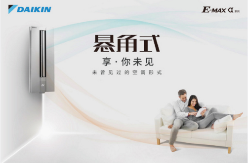 全新E-MAX α系列懸角式空調(diào),革命性的懸角設(shè)計(jì),可懸掛于客廳轉(zhuǎn)角,為客廳釋放出更多黃金空間。